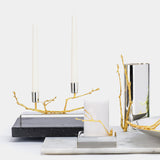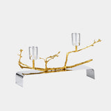Unikátní svícen vyrobený z postříbřeného kovu a pozlacených větviček. Svícen na dvě svíce.