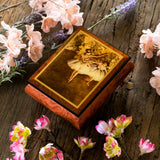 Nádherná, ručně vyrobená šperkovnice je elegantním doplňkem dámy. Dřevěná hrací skříňka je polstrována semišem. Vrchní dekorace je reprodukcí obrazu Deux danseuses en scène od Edgar Degas.