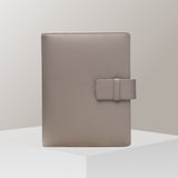 Materiál: italská hovězí kůže Gritti v šedo-béžové barvě, pozlacená kroužková mechanika