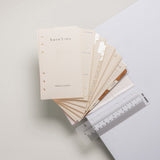 Diář nabízí množství kapsiček a bohatou vnitřní náplň pro poznámky a plánování. Kompletní náplň včetně kalendáře je součástí balení.