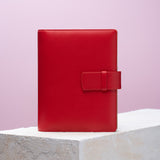 Materiál: italská hovězí kůže v červené a koňakové barvě, pozlacená kroužková mechanika