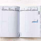 - denní kalendář 2023 den na stránku - 2 úvodní prázdné řádky; každý den s řádky s časovým rozložením od 7:00 - 20:30 (jeden řádek na celou hodinu, jeden po půl hodině); východ a západ Slunce; znamení zvěrokruhu; na konci 6. řádků pro poznámky