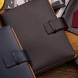 - pravá vnitřní strana desek: vertikální kapsa po celé délce, horizontální kapsa pro poznámky či pro zasunutí poznámkového bloku (nelinkovaný poznámkový blok je součástí balení), poutko na psací potřebu v kombinaci kůže a gumičky pro možnost uchycení psacích nástrojů různých šířek