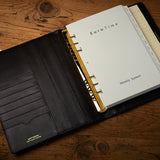 Materiál: italská telecí kůže, pozlacená kroužková mechanika
