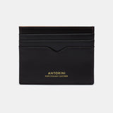 Ultratenká kožená slim peněženka používaná také jako pouzdro na vizitky a karty je ručně vyrobená z nejkvalitnější italské hovězí kůže. Precizní ruční práce dává okusit jedinečný pocit harmonie, krásy a elegance. Krása špičkové práce i špičkové kůže je umocněna dovnitř zakládanými přesahy. Vnitřní prostor je vykládán černou viskózou. Peněženka se snadno vejde do kapsy u saka.