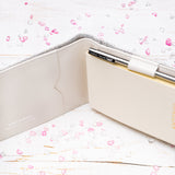 Představujeme novou úchvatnou kolekci Essence inspirovanou něžnou krásou. Zápisníky ze stříbrné zářivé kůže jsou velmi půvabné, ženské a plné sebevědomí. Zářivé doteky jemných světelných odlesků jsou v dokonalé harmonii s ivory interiérem. Stříbrné zápisníky jsou jako stvořené pro vaše obchodní schůzky i na speciální příležitosti. Zápisník je doplněn o praktickou kapsičku na vizitky či poznámky a podélnou kapsu po celé délce zápisníku s možností uložení poznámek a českých bankovek. Poznámkový bloček i mini propiska jsou součástí balení.
