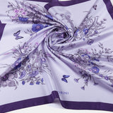 Krásný hedvábný šátek ANTORINI s květy a motýly, fialový