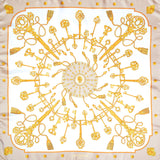 Krémový hedvábný šátek ANTORINI z limitované kolekce dekorovaný zlatými ornamenty a motivy klíčů. Tento krásný hedvábný šátek pro vás vyrábíme z nejjemnějšího italského hedvábí mimořádné kvality ve městě Como v Itálii. Okraje šátku jsou ručně šité.