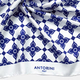 Moderní hedvábný šátek ANTORINI Geometric, modro bílý