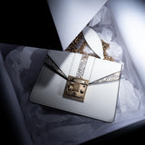 Tato kabelka je ručně vyrobena z nejkvalitnějších italských kůží pomocí tradičních řemeslných technik. Je zdobena pravou hadí kůží na bočních a středových liniích. Její ostré linie a luxusní masivní zámek podtrhují výjimečný dojem a nenechají nikoho na pochybách o tom, že je určena pro ženu s vysokými nároky.