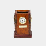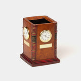 Unikátní stojánek na psací potřeby s hodinami. Každá ze čtyř stran má své hodiny a označení města: Paris, London, New York a Tokyo.