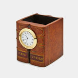 Stylový stojánek na psací potřeby v podobě imitace historických knih s funkčními hodinami. Hodiny je možné seřizovat a měnit baterii.