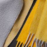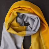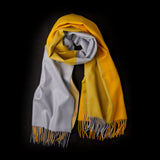 Jemná kašmírová šála v barevné kombinaci šedé a žluté barvy.