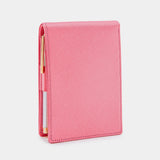Krásný a praktický zápisník v růžové kůži se saffiano úpravou.