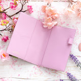 Dámský diář: Kožený A6 diář / zápisník , stříbrný s lila interiérem, 2026