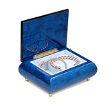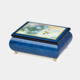 Nádherná hrací skříňka s překrásným obrazem od světové malířky Lena Liu, Violet Hummingbird (Kolibřík s modrými květy). Natahovací strojek přehrává po otevření skříňky nádhernou skladbu Petra Iljiče Čajkovského - Waltz of the Flowers.