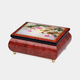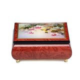 Nádherná hrací skříňka s překrásným obrazem od světové malířky Lena Liu, Hummingbird with Fuchsia (Kolibřík s fuchsiemi). Natahovací strojek přehrává po otevření skříňky nádhernou skladbu Petra Iljiče Čajkovského - Waltz of the Flowers.