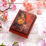 Nádherná, ručně vyrobená šperkovnice je elegantním doplňkem dámy. Dřevěná hrací skříňka je polstrována semišem. Vrchní dekorace v podobě motýla. Skříňka po otevření přehrává skladbu.
