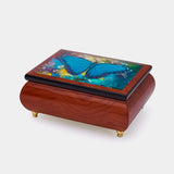 Nádherná, ručně vyrobená šperkovnice je elegantním doplňkem dámy. Dřevěná hrací skříňka je polstrována semišem. Vrchní dekorace v podobě motýla. Skříňka po otevření přehrává skladbu El Padrina - The God Father.