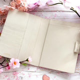 - levá vnitřní strana desek: 7 kapsiček na vizitky a karty, 3 vertikální přihrádky na poznámky