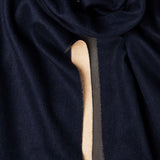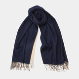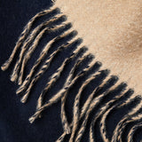 Nádherná oboustranná kašmírová šála. Elegantní kombinace tmavě modré barvy s béžovou vytváří harmonii a výjimečný pocit. Nejkvalitnější kašmír pro dokonalé teplo.