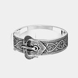 Stříbrný dámský náramek v podbě pásku s keltskými dekoracemi a se zavíracím mechanismem.
