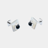 Elegantní manžetové knoflíčky ANTORINI ruční výroby z kolekce BW. Luxusní knoflíčky s originálním designem jsou vyrobeny z rhodiovaného kovu. Čtvercová část knoflíčku je zdobena perletí, střed je dekorován kontrastním černým krystalem Swarovski. Knoflíčky jsou skvělým doplňkem pro každodenní nošení.