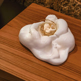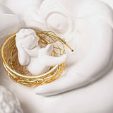Umělecké ztvárnění Betlému s postýlkou v podobě pozlaceného hnízda.