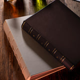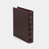Kožený šanon na dokumenty v hnědé barvě velikosti A4 vyrobený tradiční rukodělnou knihařskou technikou v podobě historické knihy. Špičková italská kůže a vnitřní moaré tkanina spolu s historickou technikou zpracování propůjčují šanonu jedinečný vzhled. Vhodné do luxusních pracoven.