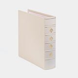 Kožený šanon na dokumenty velikosti A4 vyrobený tradiční rukodělnou knihařskou technikou v podobě historické knihy. Špičková italská kůže v krémové barvě a vnitřní moare tkanina v kontrastní růžové barvě spolu s historickou technikou zpracování propůjčují šanonu jedinečný vzhled. Vhodné do luxusních pracoven.