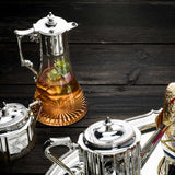 Elegantní křišťálový džbán se stříbrnou dekorací.