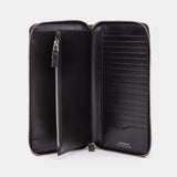 Velká pánská peněženka na zip na velké množství karet, hladká černá kůže