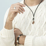Pánský kožený náhrdelník zdobený stříbrným osmiúhelníkem.