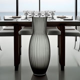 Skleněná váza z rýhovaného šedého skla, dekorováno korunou z motivu kolekce Palace.