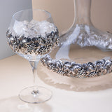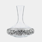 Nádherný dekantér s postříbřenou dekorací s motivem vinné révy a hroznů.