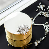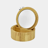 Šperkovnice vyrobena ze dřeva kaučukovníku brazilského s postříbřenou dekorací v podobě květu. Uvnitř šperkovnice je zrcátko.