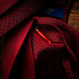 Hedvábná kravata ANTORINI o vysoké gramáži. Sedmkrát skládaná kravata ručně šitá s nejvyšší pečlivostí italskými mistry. Kravata ukrývá drobný přívěsek z pravého červeného korálu a pozlaceného stříbra 925/1000 "corno-pepperoncino", neboli červenou papričku, která je tradičním talismanem pro štěstí a ochranu před zlem. Přívěsek je pečlivě uschován uvnitř záhybů kravaty a díky své drobné velikosti není při nošení vidět z žádné strany. Elegantní a okouzlující, pro pány s vysokým smyslem pro kvalitu.