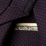 Luxusní kravata ANTORINI o vysoké gramáži nejkvalitnějšího hedvábí. Kravata je ušitá s nejvyšší pečlivostí italskými mistry, díky speciálnímu šití a zapínání na červený korál ukrývá praktickou kapsičku na platební kartu, bankovky či vizitku.