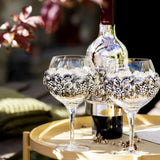 Luxusní set sklenic na víno s masivní dekorací motivu vinné révy a hroznů.