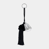 Přívěsek na klíče s rolničkou a třásněmi, postříbřeno