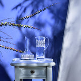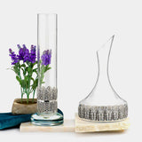 Nádherný dekantér na víno s postříbřenou dekorací s motivem listů.