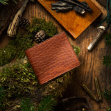Nádherná pánská peněženka ze světle hnědé bizoní kůže s čokoládově hnědým interiérem z jehněčí kůže s přihrádkami na karty (bez mincovníku).