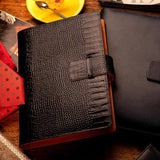 A5 Kožený manažerský diář 2026 / deník, černý s krokodýlím vzorem, plnitelný