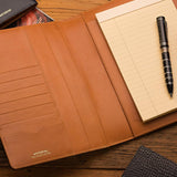 - pravá vnitřní strana desek: vertikální kapsa po celé délce, horizontální kapsa pro poznámky či pro zasunutí poznámkového bloku (poznámkový blok je součástí balení), poutko na psací potřebu v kombinaci kůže a gumičky pro možnost uchycení psacích nástrojů různých šířek