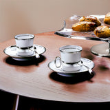 Originální porcelánový hrnek na kávu s postříbřenými dekoracemi.