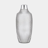 Skleněná váza z šedého skla s diamantovým vzorem a postříbřenou dekorací.