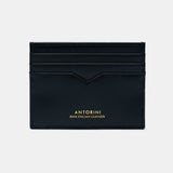Ultratenká černá kožená slim peněženka používaná také jako luxusní pouzdro na vizitky a karty je ručně vyrobené z nejkvalitnější italské hovězí kůže. Precizní ruční práce dává okusit jedinečný pocit harmonie, krásy a elegance. Krása špičkové práce i špičkové kůže je umocněna dovnitř zakládanými přesahy. Vnitřní prostor je vykládán černou viskózou. Peněženka se snadno vejde do kapsy u saka.