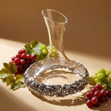 Skleněný dekantér na víno s postříbřenou dekorací