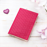 Růžový adresář A6 s květy. Adresáře lze archivovat a do desek doplňovat nové.