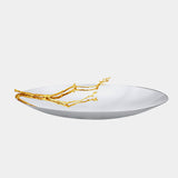 Unikátní dekorační mísa je vyrobená z postříbřeného kovu a dekorována pozlacenou větvičkou z kolekce PURE. Ručně tepáno.